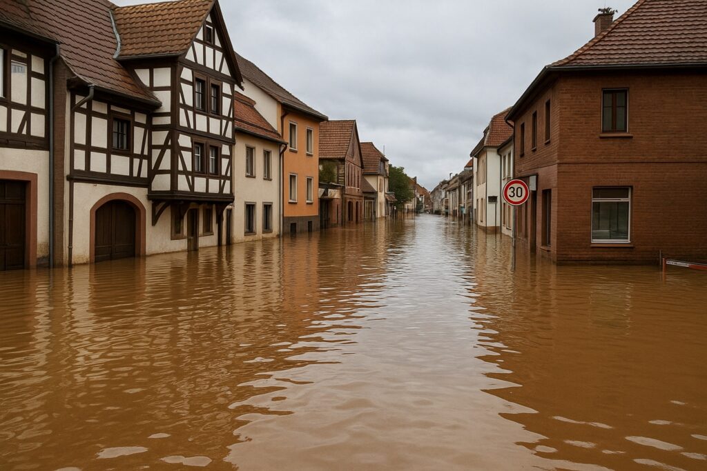 Regelmäßig kommt es zu Überschwemmungen im Plangebiet. Symbolfoto. (Quelle: ChatGPT).